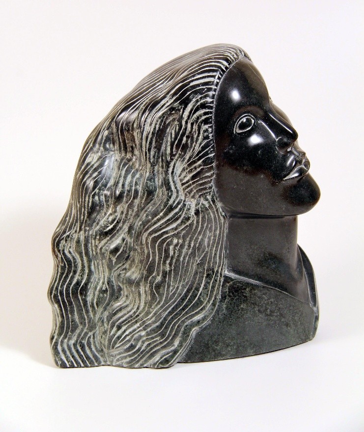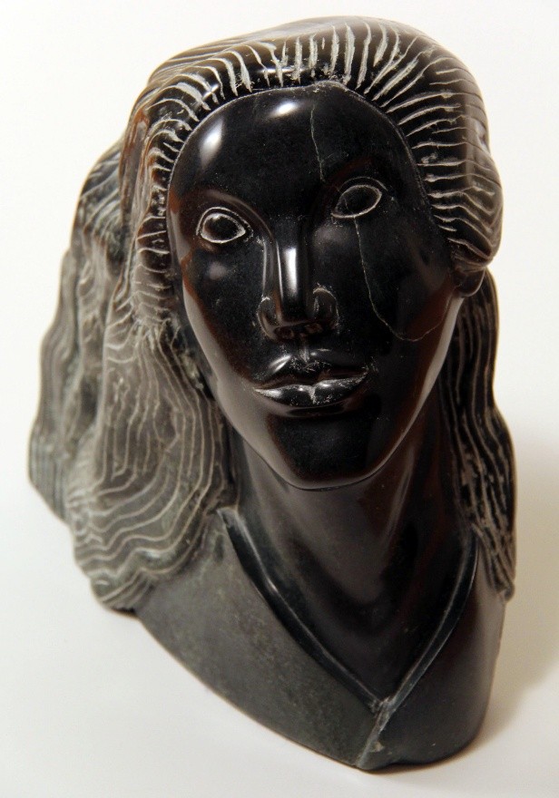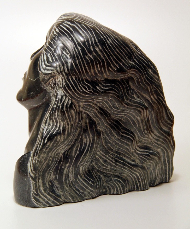 This was my first attempt at carving a face. The stone was oddly shaped for carving a head. I find that her long, wavy hair blowing in the wind distracts the viewer's eye from imperfect head shape and allows one to see and appreciate her facial beauty. Don't you agree?