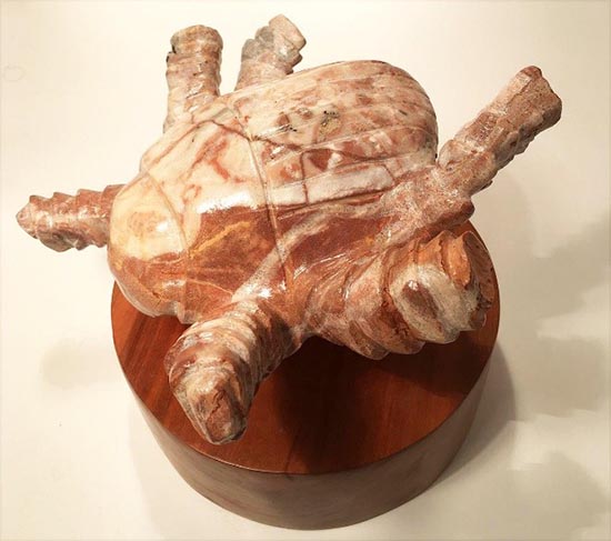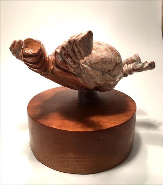 Living in the Atlanta means finding a way to coexist in harmony with insects especially Dictyoptera, Cicadidae, Formicidae, and Coleoptera. It is not uncommon for one of these creatures to crawl upon me while I am sitting in my backyard in a chaise lounge sipping on a cold one under the hot summer sun. Having lived in Atlanta for over thirty years, I have become so accustomed to this encroachment that I now routinely displace them by a simple flick of my finger and watch them go flying to a new, non-intrusive location. For some strange reason, I felt compelled to immortalize this experience by carving it. Enjoy!